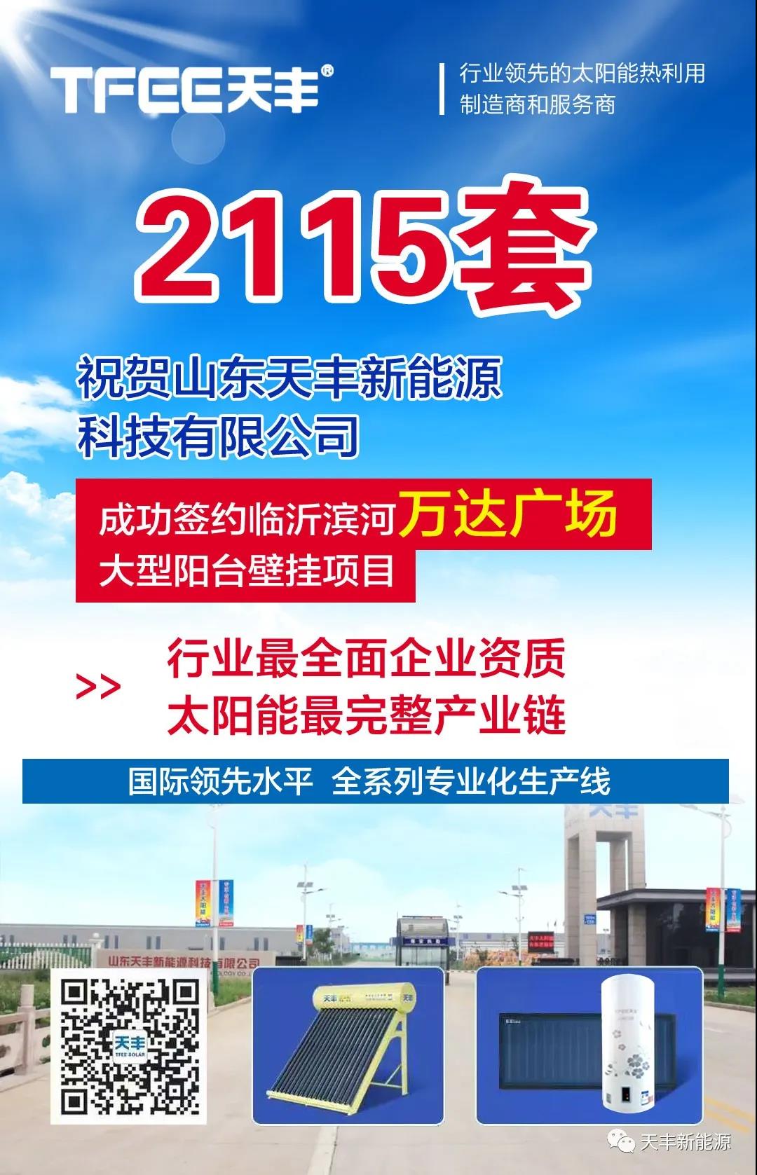 近日,天豐新能源工程部再傳捷報(bào),通過與各品牌的激烈角逐,一舉斬獲臨沂濱河萬達(dá)廣場大型陽臺(tái)壁掛工程項(xiàng)目,陽臺(tái)壁掛太陽能熱水器數(shù)量達(dá)2115套,為近20座高層住宅提供舒適熱水,這將成為天豐在樓盤配套陽臺(tái)壁掛工程領(lǐng)域的又一經(jīng)典力作。